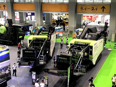 展會上展出的挖掘機等設(shè)備。