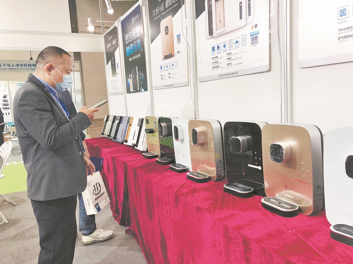 除了壁掛式的速熱開水機和分類垃圾桶受到逛展人的追捧,記者還發現了如凈水器、水質分析儀,此外,近年來進入大眾生活的皮劃艇、快艇等也變得更受歡迎。業內稱,與水相關的高科技產品不僅在工業制造上發揮效能,如今也正在深入百姓家常生活。