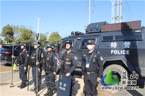 此次博覽會場館面積為2.3萬平方米,設立8大實體展區、1個線上展區,標準展位較首屆增加150個。接到安保任務后,在縣委、縣政府和市公安局的堅強領導下,藍山縣公安局超前部署,迅速成立安保工作領導小組,按照“領導重視、精心組織、周密部署、安全有序、萬無一失、圓滿順利”的原則,詳細制定安保方案。市公安局黨委委員、副局長沈林松率隊前往博覽會現場督導,市公安局警保衛支隊、刑偵支隊警犬大隊、巡特警支隊等相關警種赴藍山協助開展安保工作,有力確保了各項安保措施落到實處。局領導先后數次到實地查勘現場,明確各警種職責任務,確保任務到人、責任到人。